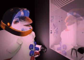 At the end of the stairs, behind the glowing passage, there is a gate to a fantastic space station. In it: remains of a seventy-five-year long research history. Heaped up in scripts over scripts – a series of tests documenting the attempts to communicate with a strange, extraterrestrial entity and its failure. The crew seems to be running experiments behind the walls. Every now and then appear animal-like shapes and simulations. Like on the planet “Solaris” in Stanislaw Lem’s novel of the same title, in this performative installation we experience a secret place, which at the same time is a non-place – a space defying rational classification and understanding. The performance within develops and is generated by the decisions of the visitor, changing in every new passage – becoming whatever the person is bringing with him or her. All events are created live on-site and mutate constantly.