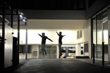 Zwei Lichter beleben den Ehrenhof vorm Mannheimer Schloss im Abenddunkel. Zwei Gestalten mit Taschenlampe bewegen die Lichter wie kreisende Signalpunkte auf leerer Fläche. Eine Station weiter synchronisieren die Tänzer im Neonlicht einer Tiefgarage ihren Gleichschritt, falten sich gemächlich ein und auf wie bewegliche Modelle, die sie dann doch aufbrechen: Durch schnelle Bewegungsausbrüche, die den Körpern im sterilen Raum eine absurde Note verleihen. Wie kleine ausgetickte Apparate veranschaulichen die Performer das Verhältnis vom Körper zum Raum. Später auf den monströsen Leerflächen im Stadthaus und am Ende ausgestreckt dem Denkmal von Dalberg zu Füßen. rah